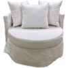 Con funda Tussor a lección según catalogo, ideal para sentarse y relajarse, crea un ambiente limpio, hermoso y saludable, con estilo minimalista, lo mejor es que desmontas la funda la lavas y listo como nuevo todo, quieres cambiar la deco!!! no hay problema cambias la funda unos cojines y ya esta.