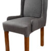 Esta silla vestida de respaldo alto aporta elegancia a salón y al comedor, tapizada en pana o en lino antidesgarro, colores a elección despues de ofertar, estructura en Madera lenga fueguina.