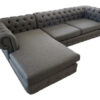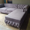 Sillón Esquinero Chesterfield Capitone Tres Cuerpos Lino Antidesgarros
